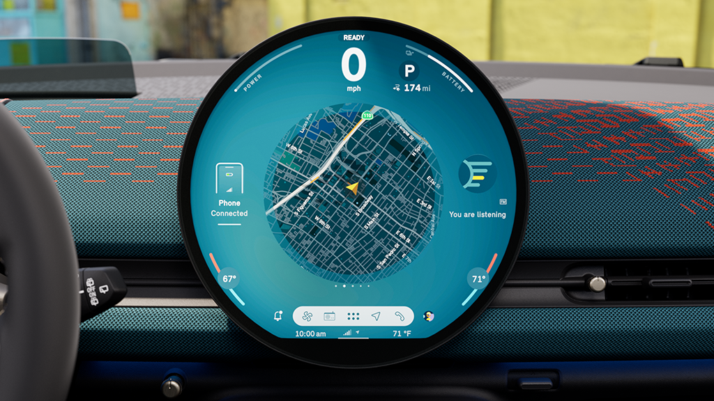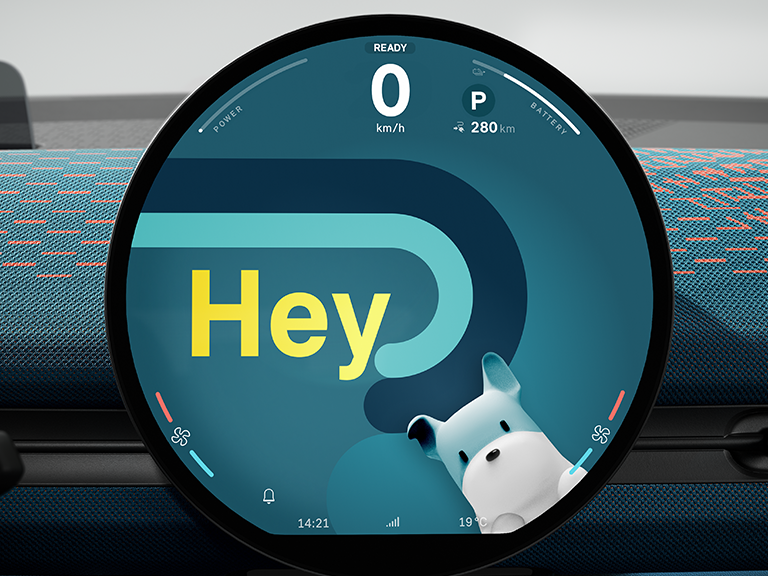 ダッシュボードの中心には、まったく新しい円形センター・ディスプレイがあります。新たなテクノロジーを搭載し、メーターパネルとして機能すると同時に、車載インフォテインメントや運転支援機能へのアクセスもここで操作できます。