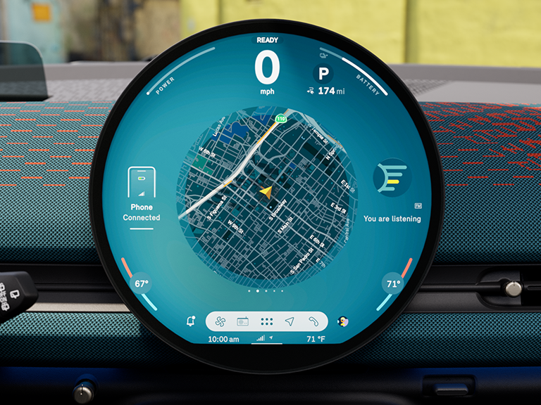 MINIインテリジェント・パーソナル・アシスタントは、ナビゲーション、電話、ラジオ、空調管理など、MINIの主要機能を操作してくれます。「Hey MINI」と呼びかけるか、ステアリング・ホイールのトーク・ボタンを押せば、MINIインテリジェント・パーソナル・アシスタントが起動します。