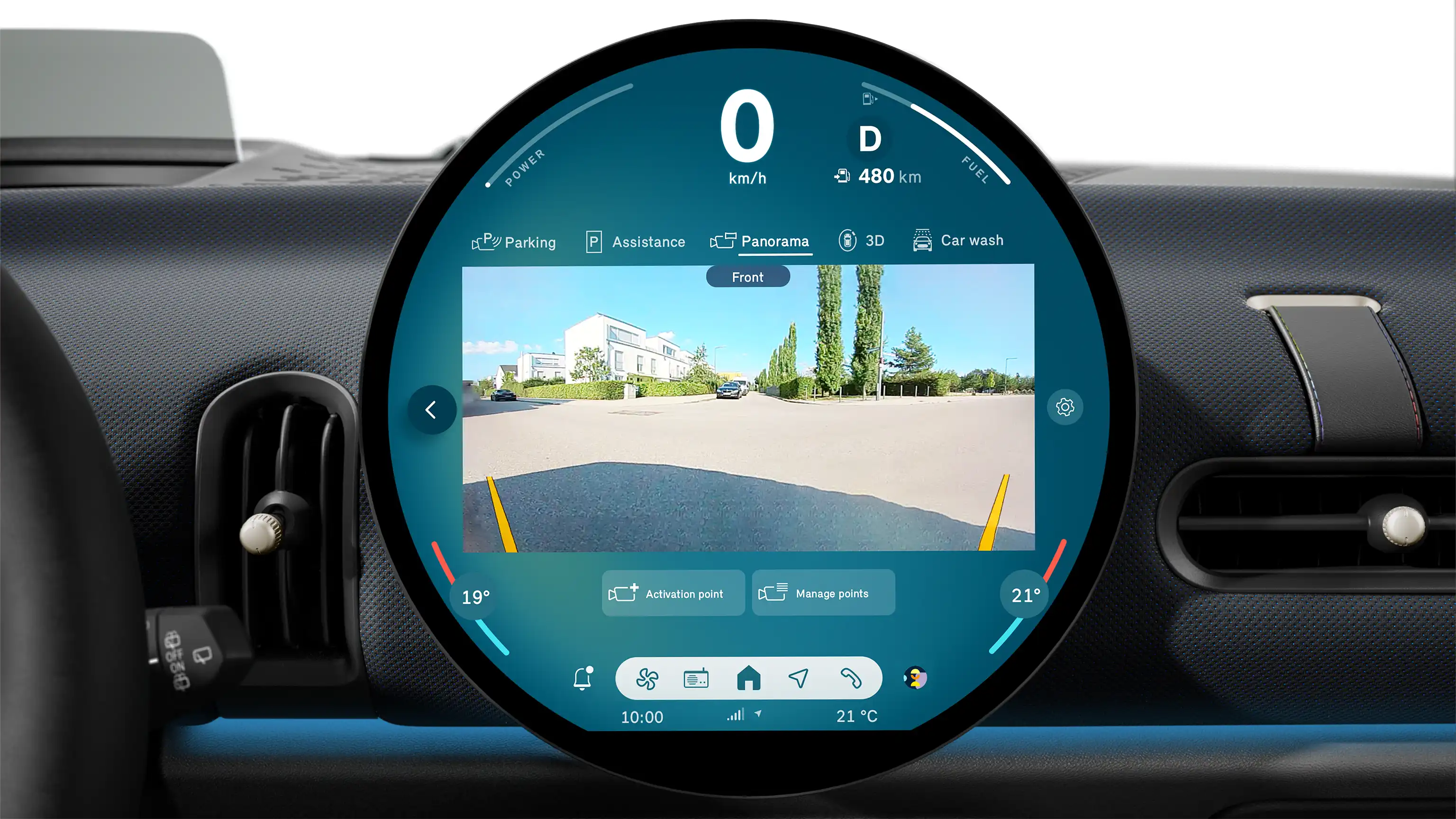 ダッシュボードの中心には、まったく新しい円形センター・ディスプレイがあります。新たなテクノロジーを搭載、メーターパネルとして機能すると同時に、車載インフォテインメントや運転支援機能へのアクセスもここで操作できます。