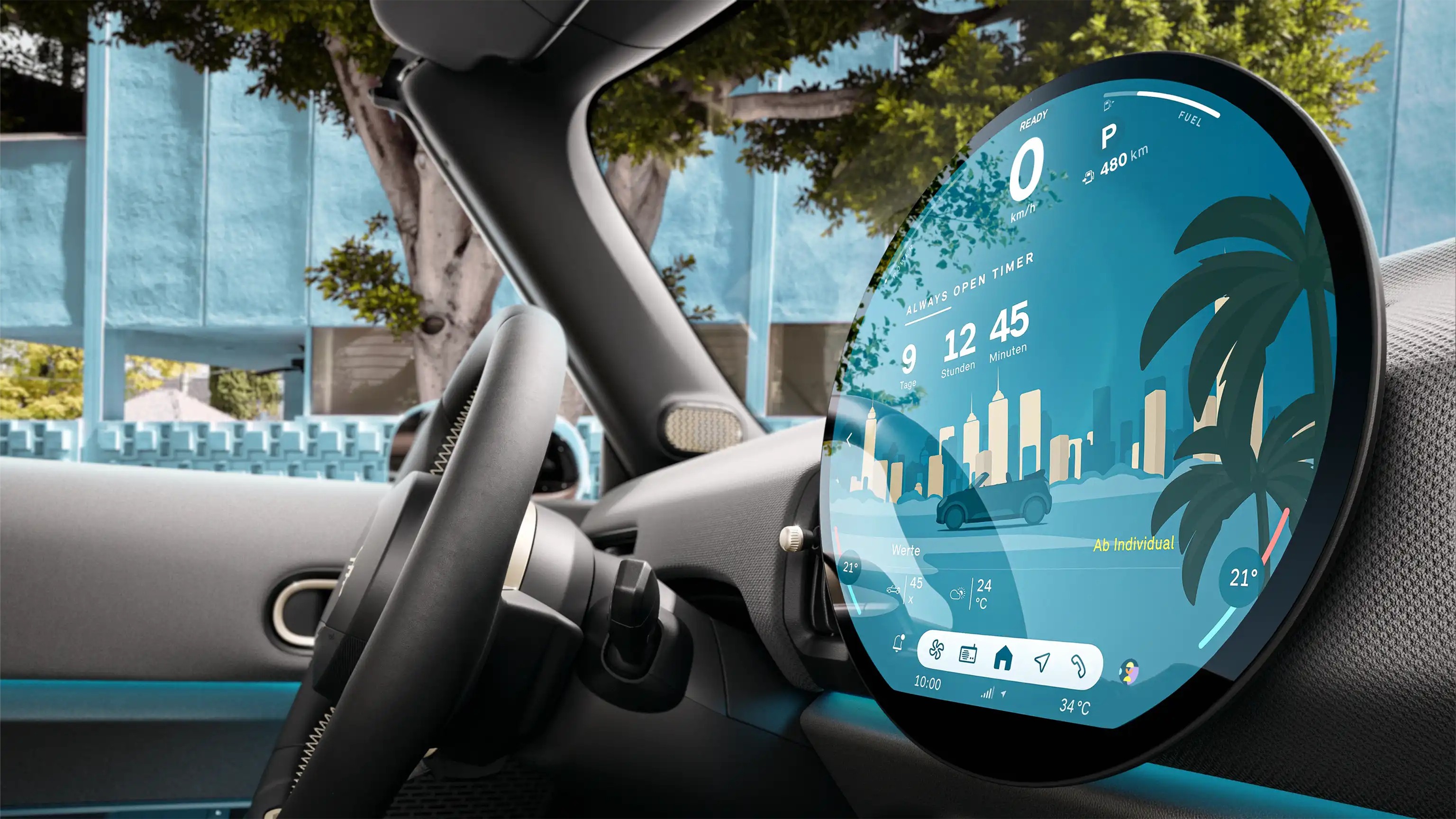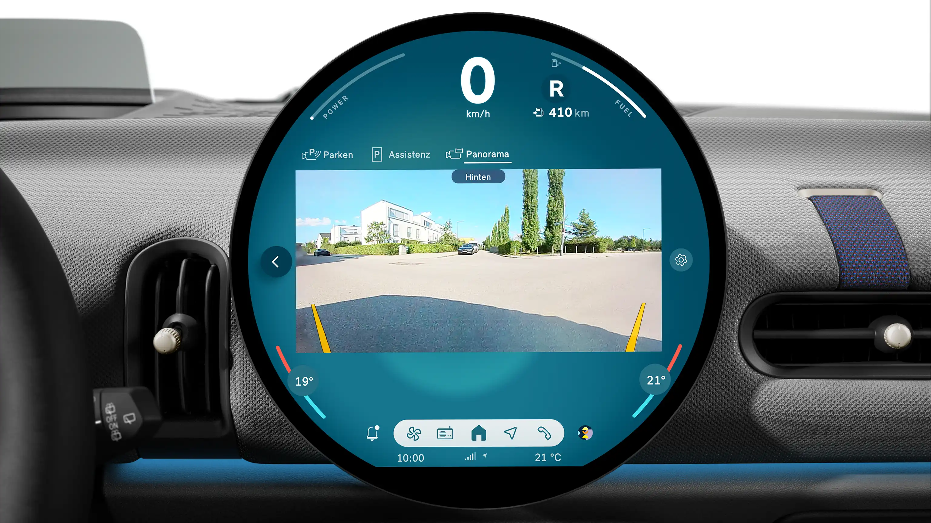 ダッシュボードの中心には、まったく新しい円形センター・ディスプレイがあります。新たなテクノロジーを搭載、メーターパネルとして機能すると同時に、車載インフォテインメントや運転支援機能へのアクセスもここで操作できます。